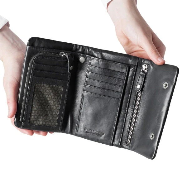 Aunts & Uncles Peach lompakko on mukavan pehmeää nahkaa. Lompakko aukeaa kahdella nepparilla ja sisältää 8 korttipaikkaa, josta yksi on läpinäkyvä. Lompakosta löytyy seteleille nepparilla oleva tasku sekä kolikoille ja kuiteille on hyvin tilaa kahdesta vetoketjullisesta taskusta. Lompakon takaa löytyy vielä vetoketjulla sulkeutuva tasku.