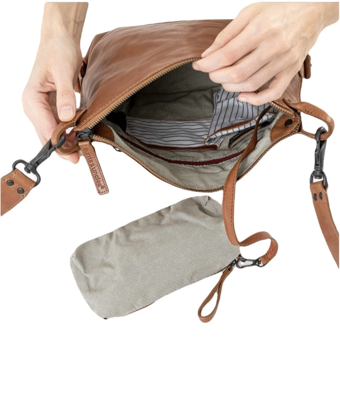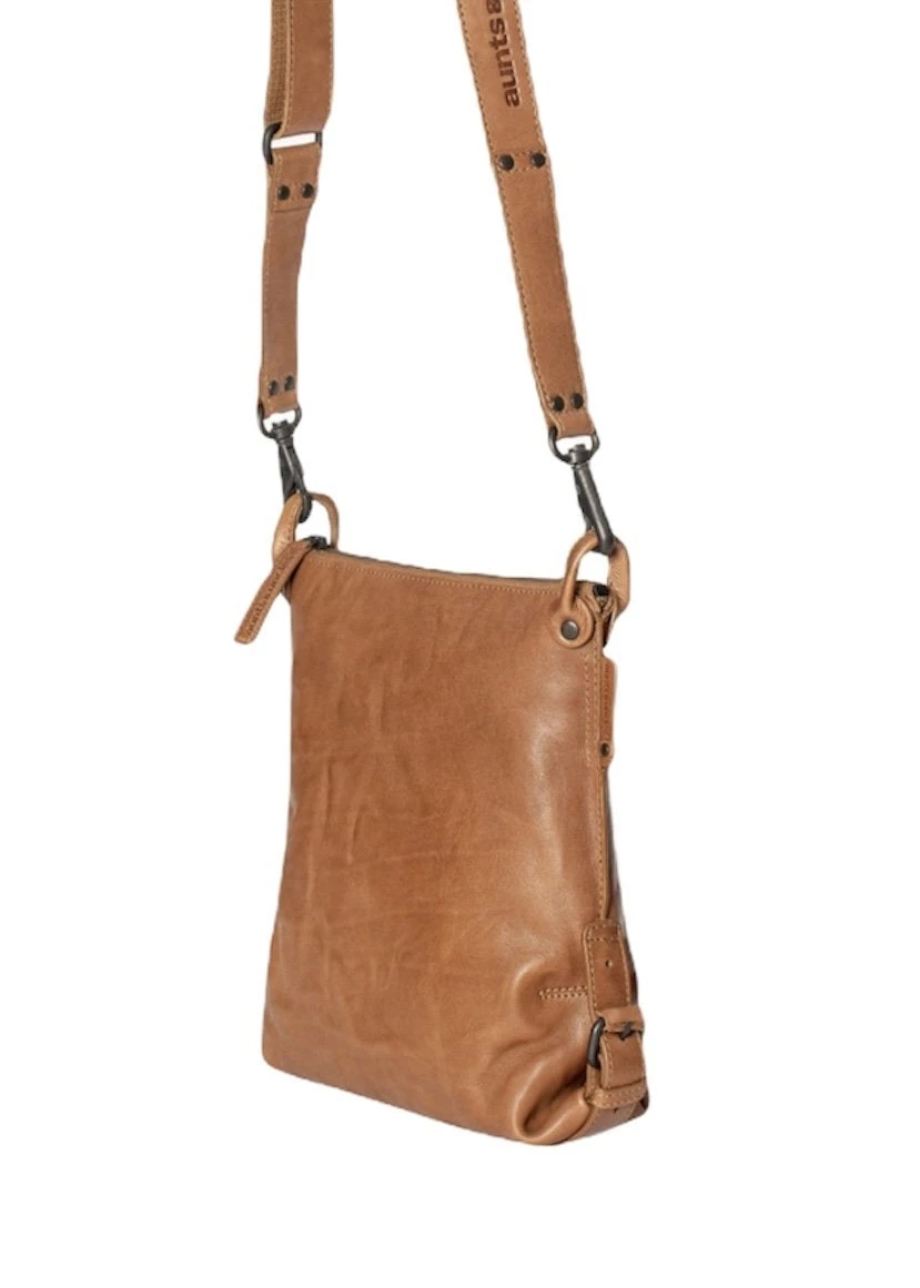 Aunts & Uncles Raisin Cookie on yksinkertainen nahkainen olkalaukku. Laukussa on merkille ominainen rouhea tyyli ja hyvin viimeistellyt yksityiskohdat. Olkahihna on säädettävä. Laukun sisällä on pikkutaskuja ja lisäksi erillinen pussukka vaikka silmälaseille.