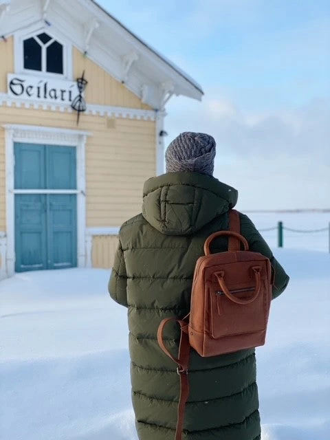 Chesterfield Davon on tilava ja käytännöllinen pikkureppu. Sisällä on pehmustettu tablettitasku, vetoketjutasku ja pari avotaskua. Edessä ulkopuolella on vetoketjutasku joka toimii samalla yksityiskohtana. Myös repun takapuolella on vetoketjutasku. Reppu aukeaa kunnolla alas asti, mutta sivuilla on pienet viilekkeet, ettei tavarat pääse tippumaan. Olkaimet ovat säädettävät. Repussa on pienet kantokahvat jotka laskeutuvat nätisti alas.