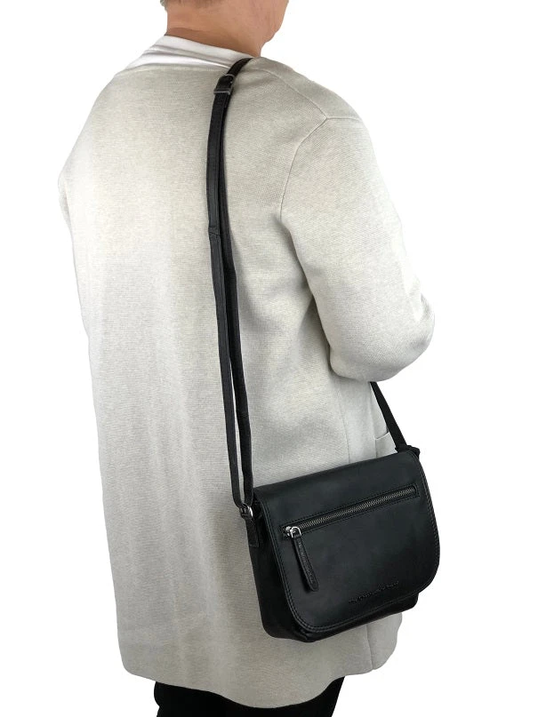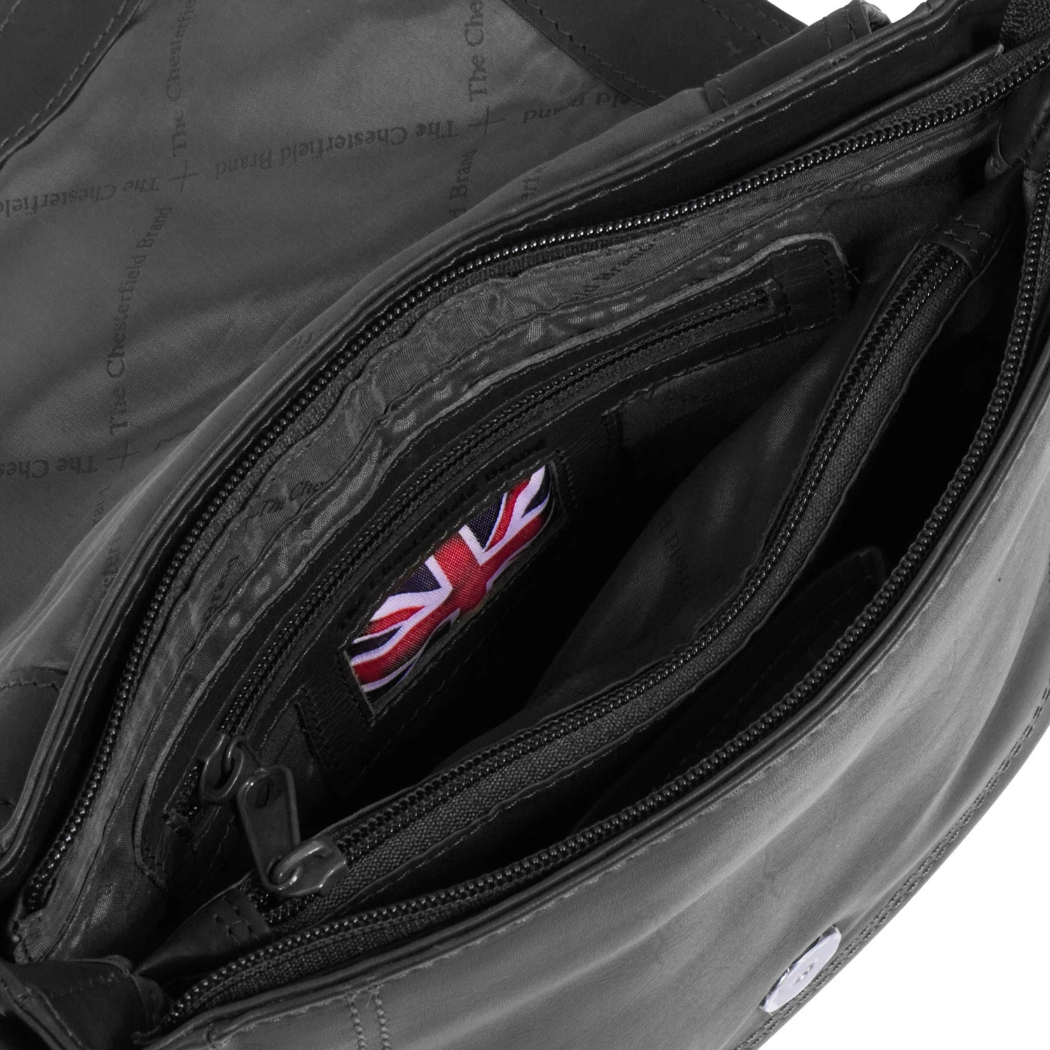 Näppärän kokoinen olkalaukku jonka sisätilat on jaettu keskeltä kahteen osaan. Keskellä ja toisella laidalla on vetoketjutasku ja lisäksi laukussa on kännykkätasku. Laukussa on nepparilla suljettava läppä ja sen alla vielä vetoketjukiinnitys. Ulkopuolella on molemmin puolin vetoketjutaskut. Laukussa on pitkä säädettävä hihna.