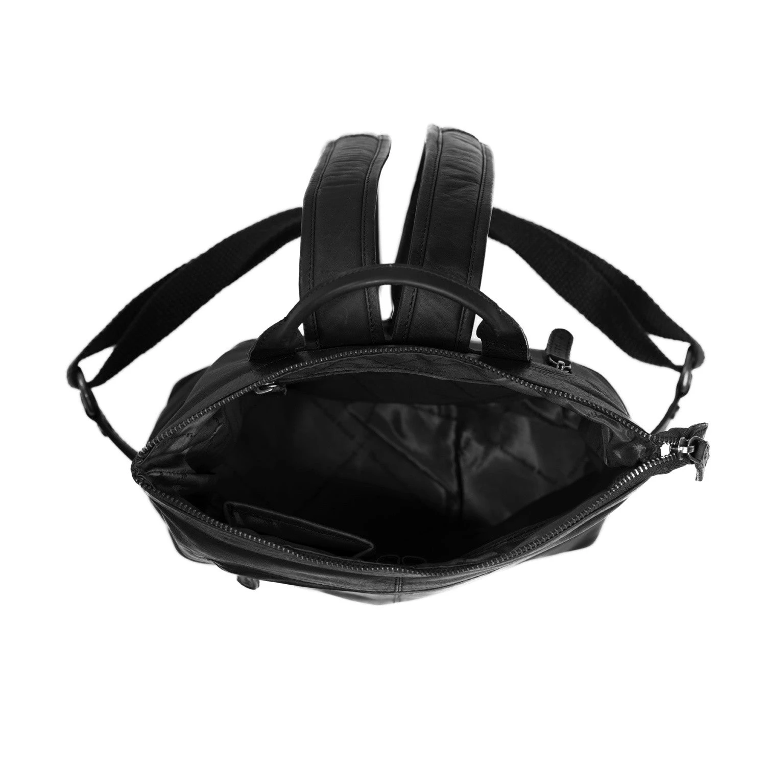 Yksinkertaisen eleetön ja tyylikäs pieni nahkareppu toimii mainiosti käsilaukun korvikkeena. Repun etu- ja takapuolella on pienet vetoketjutaskut. Pienen cityrepun sisällä on vetoketjutasku, puhelintasku ja muutama korttipaikka. Repun olkaimet ovat vahvistetut ja säädettävät.