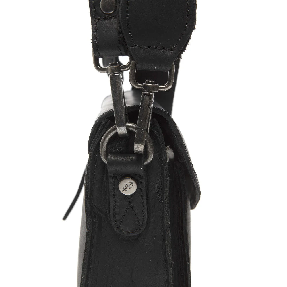 Tyylikäs yksinkertainen nahkalaukku on niin napakka, että se pysyy muodossaan tyhjänäkin. Laukussa on yksi osio jossa on vetoketjulla suljettava tasku ja avotasku puhelimelle. Lisäksi laukun edessä on avotasku ja laukun takana vetoketjutasku.