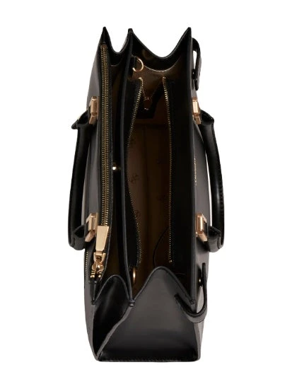 Laukku on jaettu 3 osaan. Ensimmäinen ja kolmas osio sulkeutuvat vetoketjulla ja keskimmäinen osio nepparilla. Ensimmäisestä osiosta löydät kolme avotaskua sekä yhden vetoketjullisen taskun. Toisessa ja kolmannessa osiossa ei ole taskuja. Laukun takana on vetoketjullinen tasku.