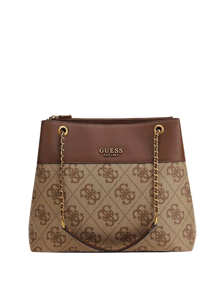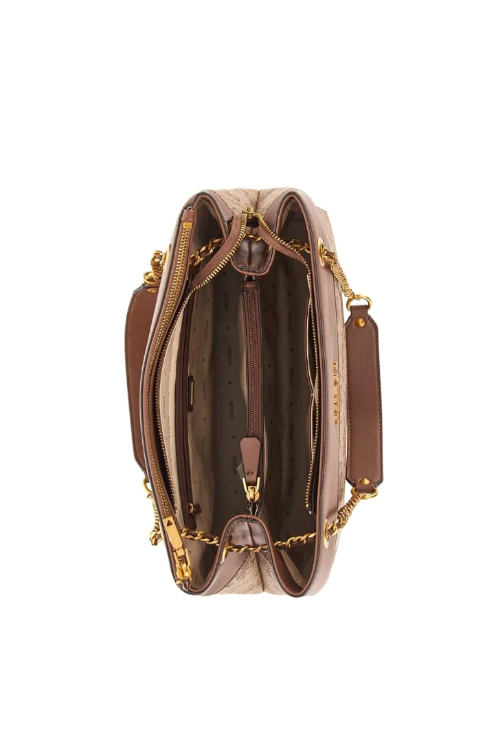 Guess Berta on tilava keskikokoinen käsilaukku jossa on paljon taskuja. Laukussa on kauniit yksityiskohdat sivuilla sekä laukun etupuolella on irroitettava koriste.