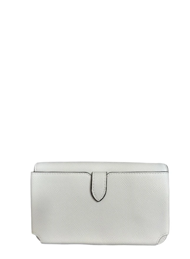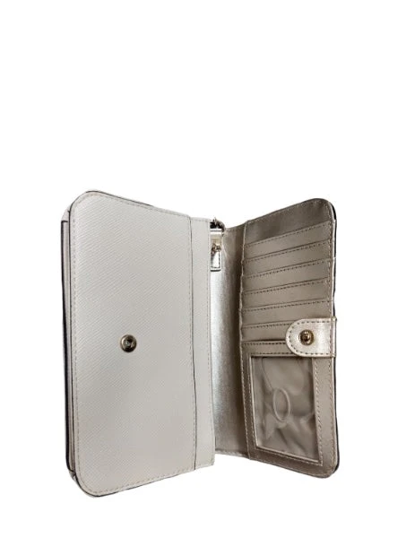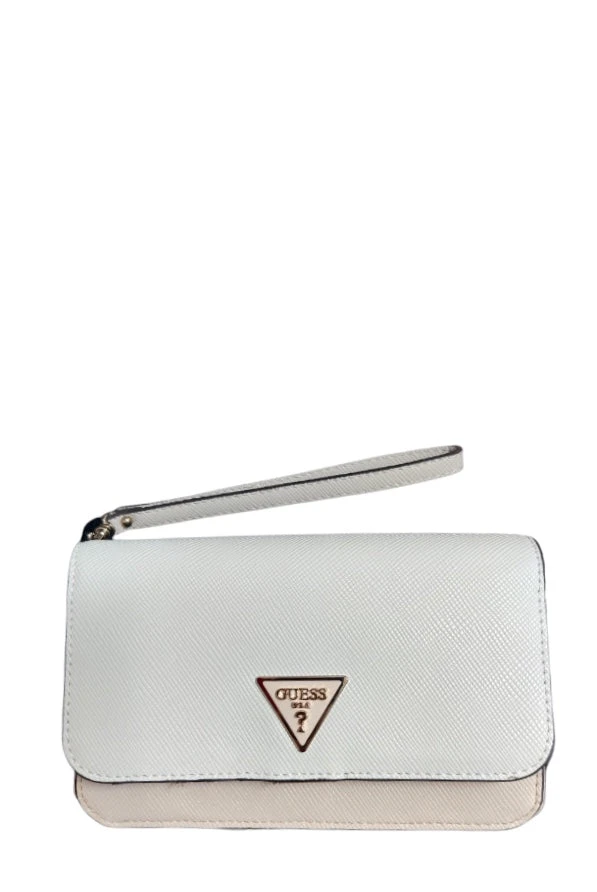 Guess Laurel lompakossa on kaunis valkoinen ja vaaleanpunainen väri. Lompakko aukeaa läpällä, jossa on kiinnityksenä neppari. Lompakon sisältä löytyy muutama avotasku ja vetoketjullinen tasku käteiselle, sekä 10 korttipaikkaa, joista yksi on läpinäkyvä. Lompakon takana on tilava tasku puhelimelle, jossa kiinnityksenä neppari. Lompakossa on myös rannehihna jonka saa halutessaan irti.