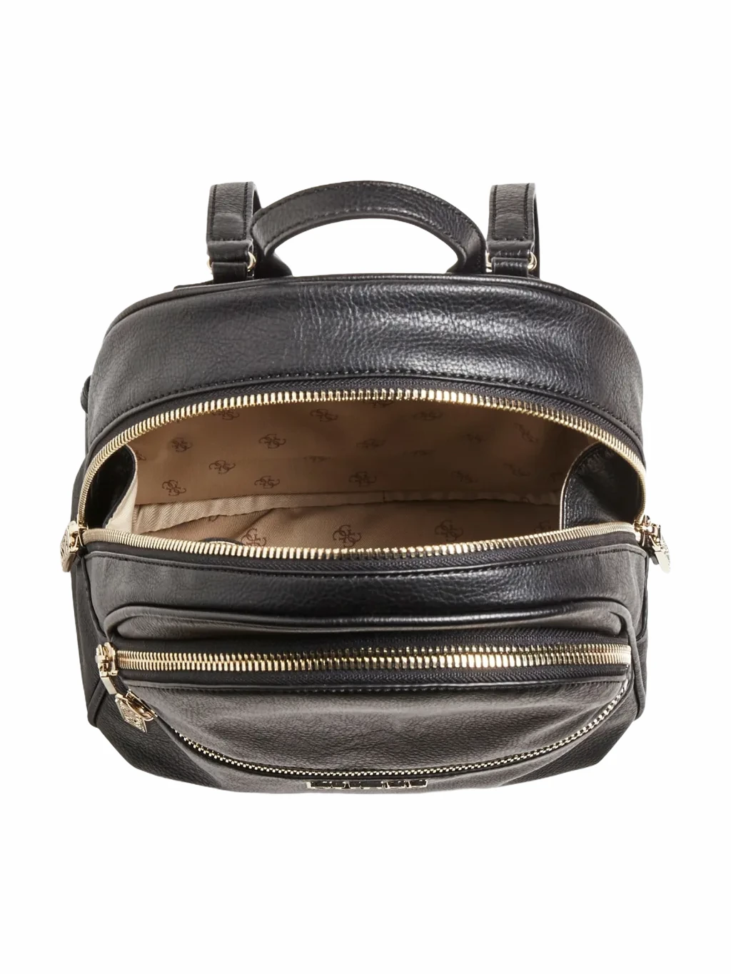 Guess Manhattan reppu toimii hyvin esimerkiksi käsilaukun korvikkeena. Repussa on iso osio, jonka sisällä on pieni vetoketjutasku ja avotaskuja. Repun etupuolella on kaksi erillistä vetoketjullista taskua. Olkaimet ovat säädettävät.