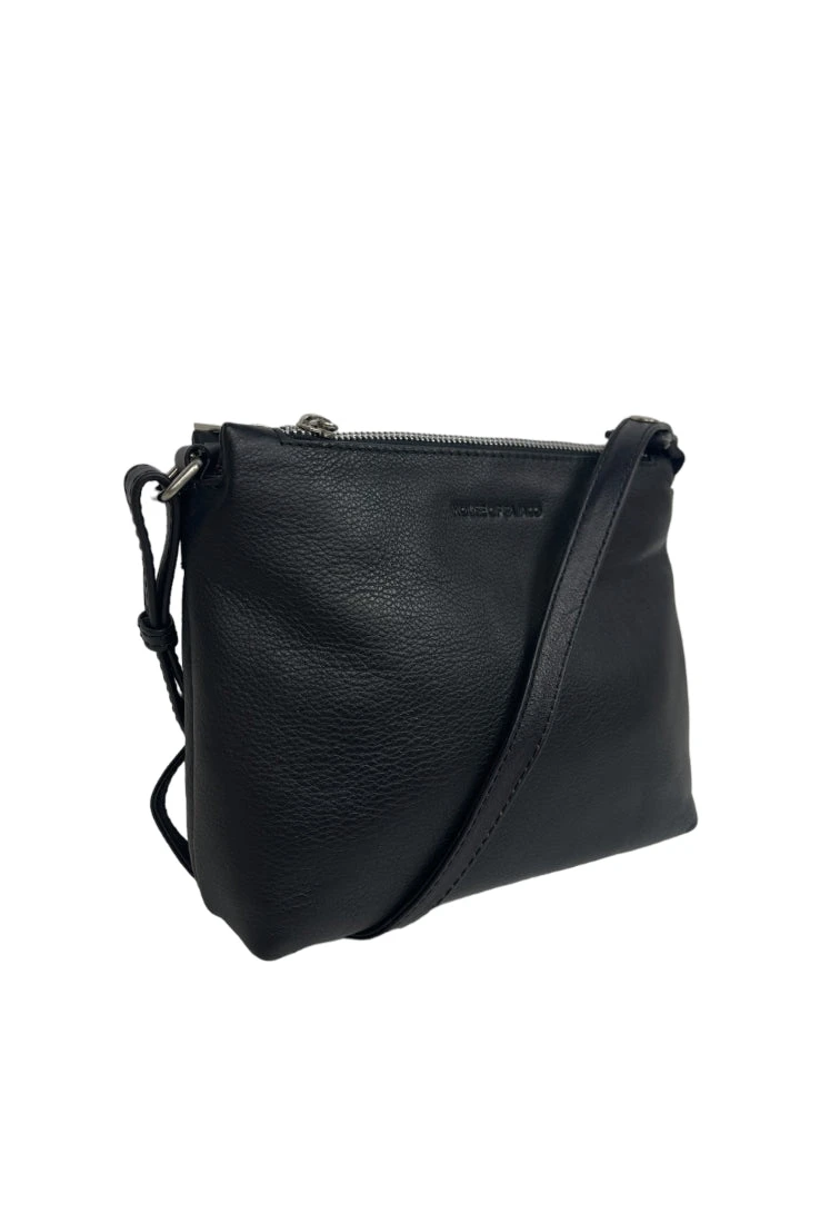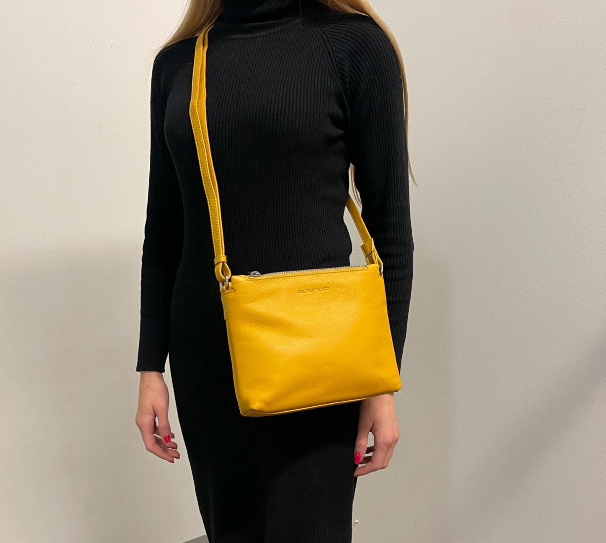 Tyylikäs olkalaukku arkeen ja juhlaan, joka on valmistettu pehmeästä nahasta.