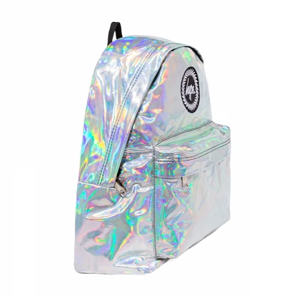 Hypen suosittu hologrammi koulureppu hopeana. Just Hype reput ovat suosittuja koulureppuja. Reppi on sopivan kokoinen ala-asteikäisille koululaisille. Repussa on hyvät pehmustetut olkaimet ja selkätuki. Repun edessä on vetoketjullinen tasku.