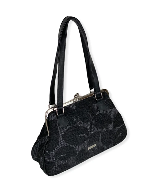 Kehyslaukku musta kuvioitu kankainen käsilaukku