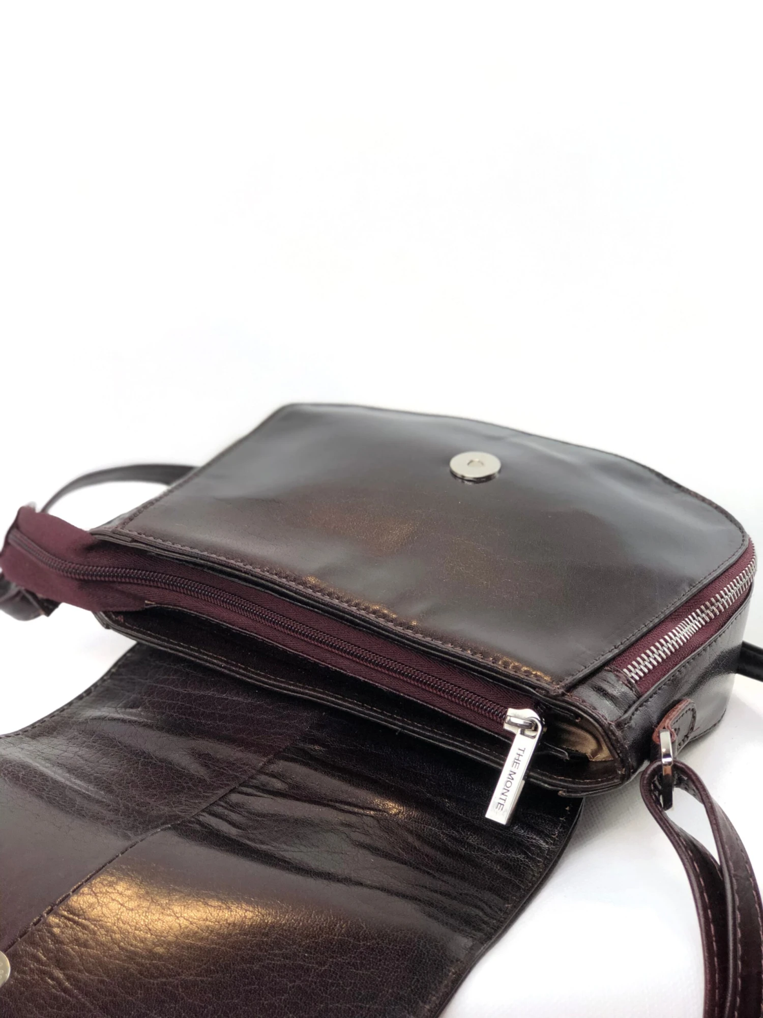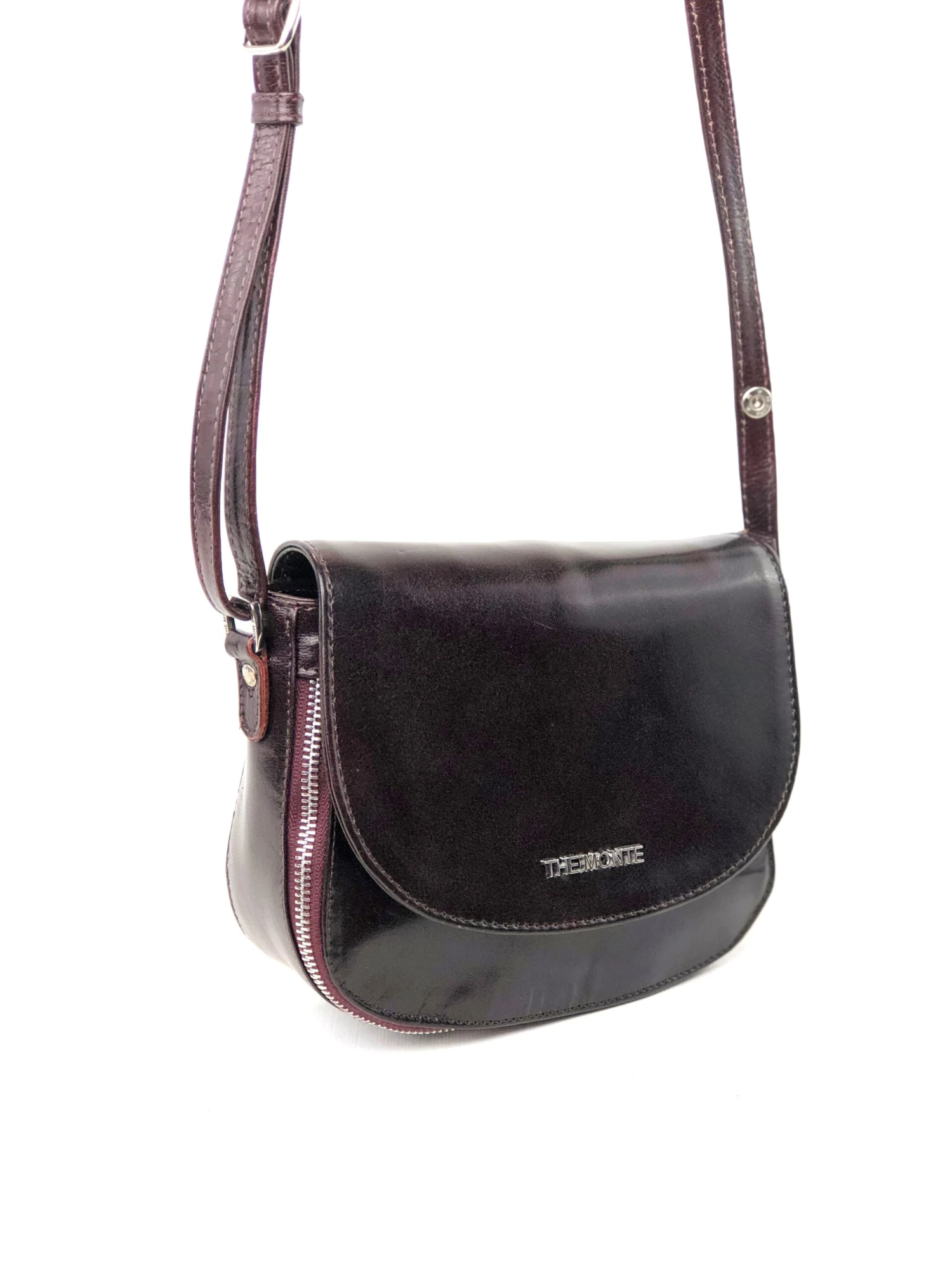 Kaunis kiiltävää nahkaa oleva olkalaukku on oikea arjen kohokohta. Laukun läppä kiinnittyy nepparilla, mutta läpän alla on vielä vetoketjukiinnitys. Laukun sisällä on vetoketjutasku ja avotasku. Laukun takana on vetoketjutasku. Olkahihna on säädettävä. Laukun edessä näkyvä vetoketju on vain koriste.