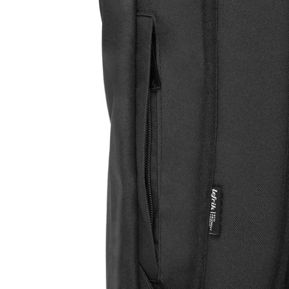 Ekologisen ei tarvitse olla vastakohta tyylikkyydelle! Lefrik Roll on vedenpitävä ja käytännöllinen reppu, jonka valmistukseen on käytetty 40 muovipulloa. Lisäksi repun valmistusprosessissa on säästetty 2,4 kg hiilidioksidipäästöjä ja 3,6 litraa vettä. Reppu suljetaan vetoketjulla ja lisäksi yläosan voi taittaa joko pienemmäksi tai isommaksi – tilan tarpeesta riippuen. Taite pysyy magneettien avulla alhaalla. Repussa on pehmustettu tasku max 15″ kannettavalle tietokoneelle. Lisäksi repun sisällä on vetoketjutasku ja muutama avotasku. Repun selkäpuolella on kaksi vetoketjutaskua: sivulla pystysuuntainen ja repun alaosassa vaakasuuntainen, jossa arvotavarat pysyvät varmasti tallessa. Repussa on pehmustetut ja säädettävät olkaimet.