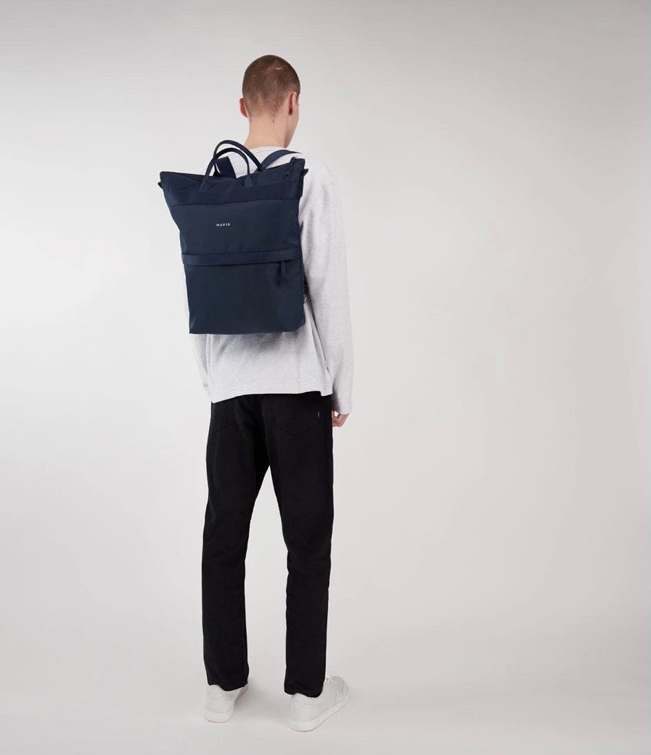 Makia Elias reppu on tyylikäs ja monikäyttöinen kierrätysmateriaalista valmistettu reppu. Repun saa selkään tai vaihtoehtoisesti saat olkaimet piilotettua kassin takana olevaan taskuun, jolloin reppu toimii kassina, ja voit kantaa sitä lyhyistä käsikahvoista. Repun sisällä on pehmustettu läppäritasku.