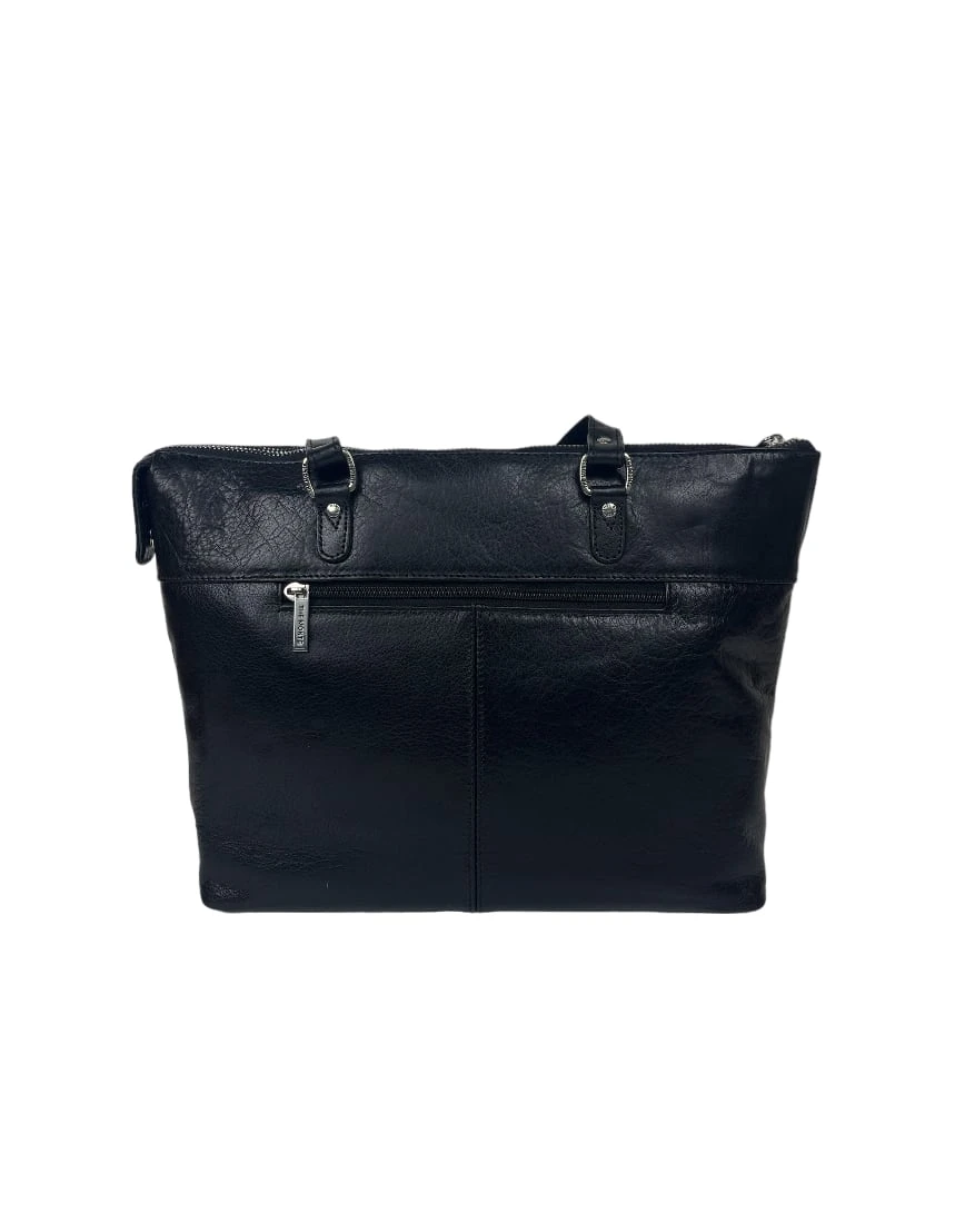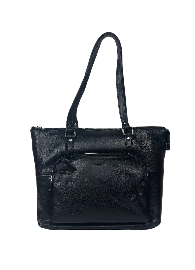 Käsilaukun ulkopuolella on molemmilla puolilla vetoketjutaskut, ja lisäksi laukun sisällä on vetoketjutasku sekä suuri avotasku johon mahtuu esimerkiksi tabletti sekä pienempi avotasku.