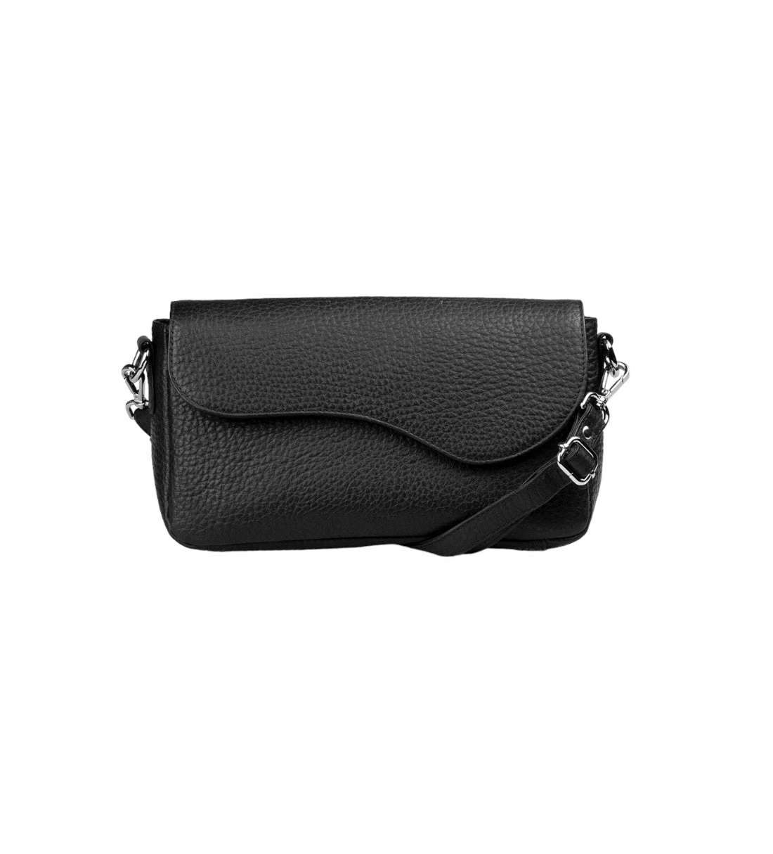 Musta Treats Joanna on käytännöllinen tilava olkalaukku kauniilla muotoilulla ja yksinkertaisella ulkonäöllä. Laukussa on magneetilla toimiva läppä jonka alla on vetoketju. Sisältä löytyy vetoketjutasku. Laukussa on myös säädettävä olkahihna