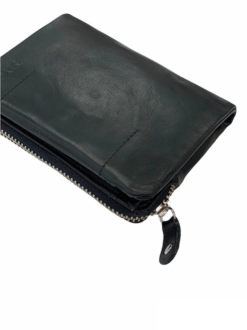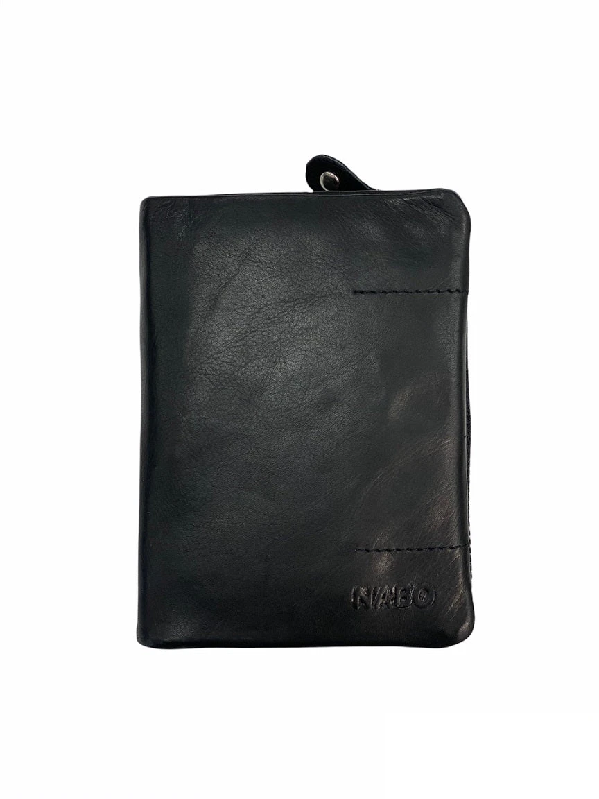 Nabo pieni lompakko on aitoa ihanan pehmeää nahkaa. Lompakko aukeaa keskeltä, ja sieltä löytyy tilaa korteille ja seteleille. Lompakon toisella puolella on kaksi vetoketjullista taskua. Lompakko on RFID suojattu.