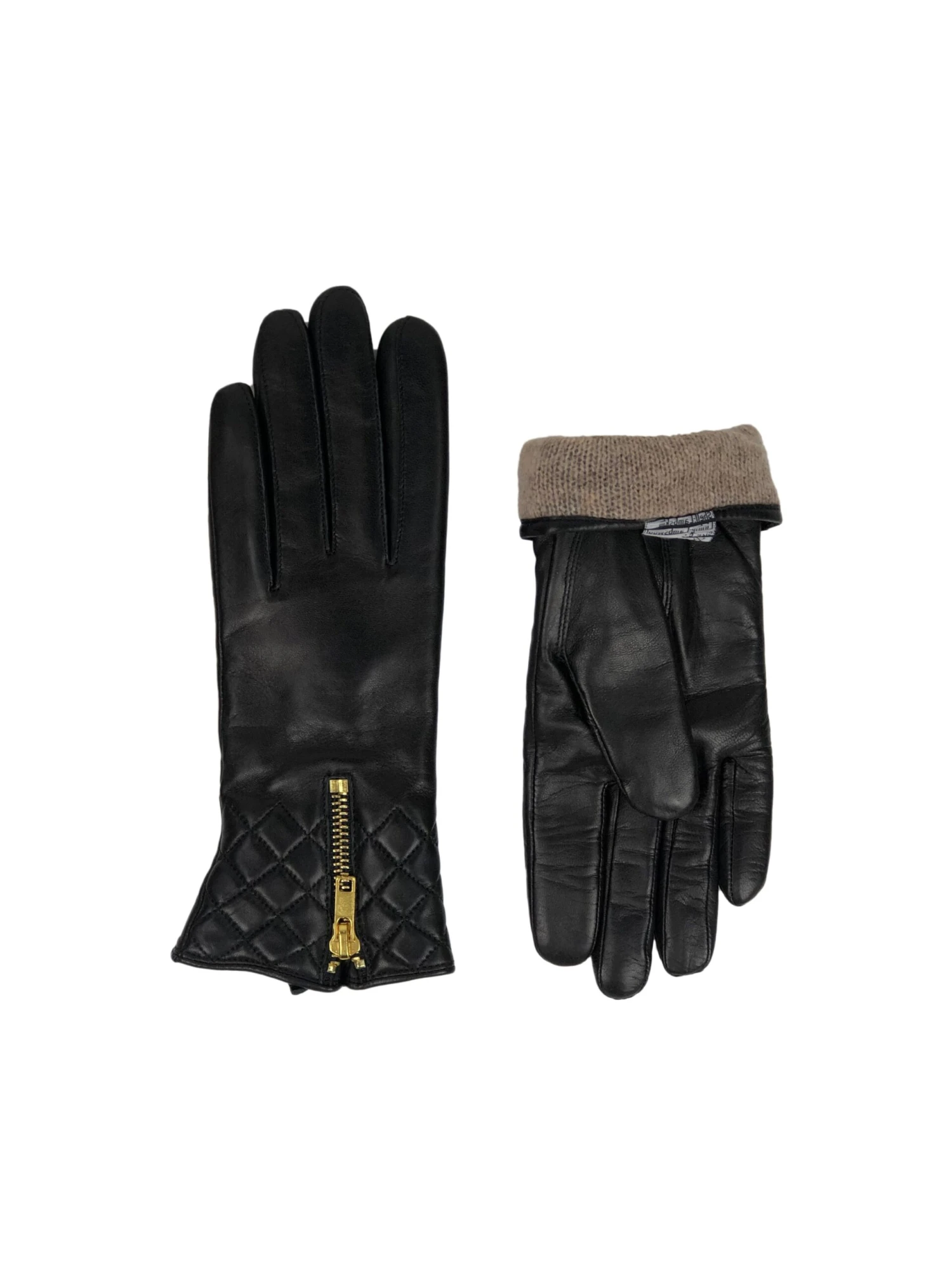 Nahkasormikkaat kullanvärisellä vetoketjulla