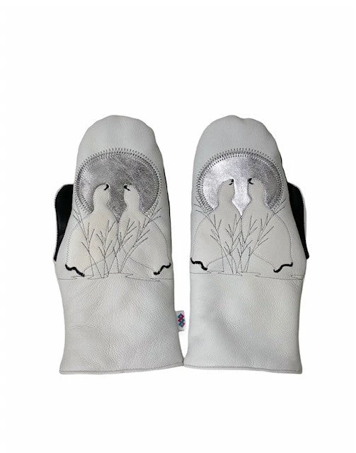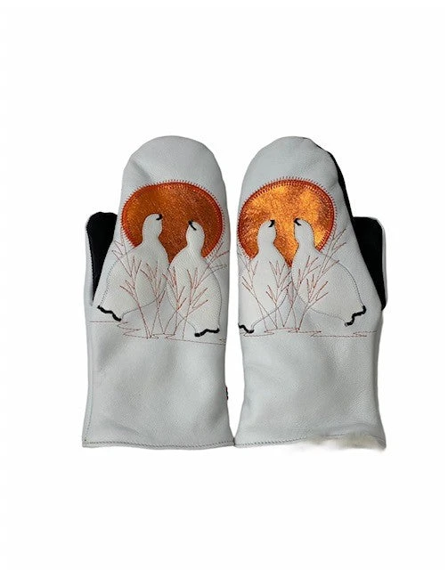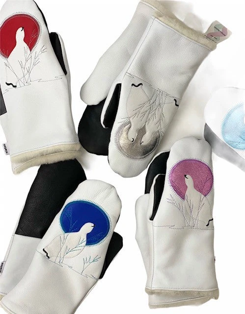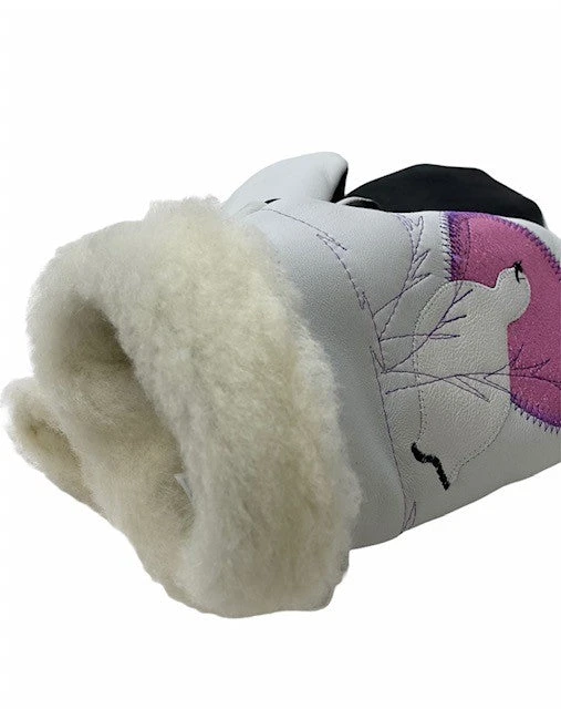 Nahkakintaat on valmistettu lampaannahasta ja niissä on lämmin vuori. Kintaiden malli on kapea sormiosasta ja levenee rannetta kohti. Kämmenosa on musta, joten siinä ei lika näy. S-M sopii pienikätiselle naiselle joka käyttää 6,5-7 kokoisia sormikkaita. Kintaat muotoutuu ja pehmenee nopeasti käytössä.