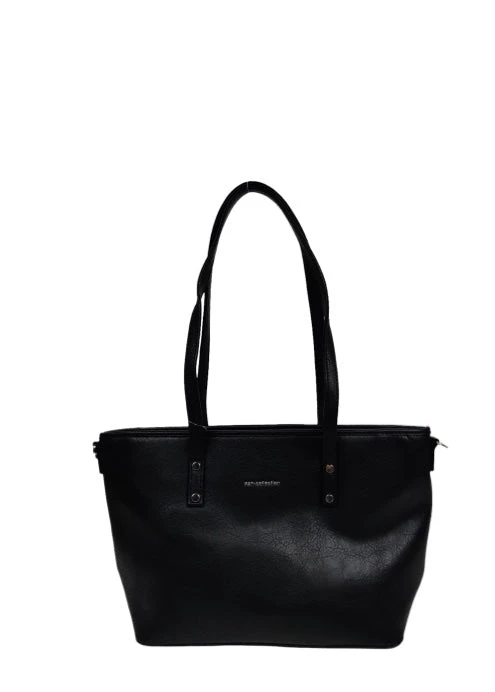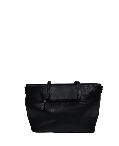 Laukun sisällä on vetoketjutaskullinen tilanjakaja ja lisäksi pieni vetoketjutasku sekä 2 avotaskua. Ulkopuolella on myös takana vetoketjutasku. Laukussa on pitkät kantokahvat, joilla se menee hyvin olkapäälle. Lisäksi mukana tulee irrotettava, pitkä säädettävä olkahihna.