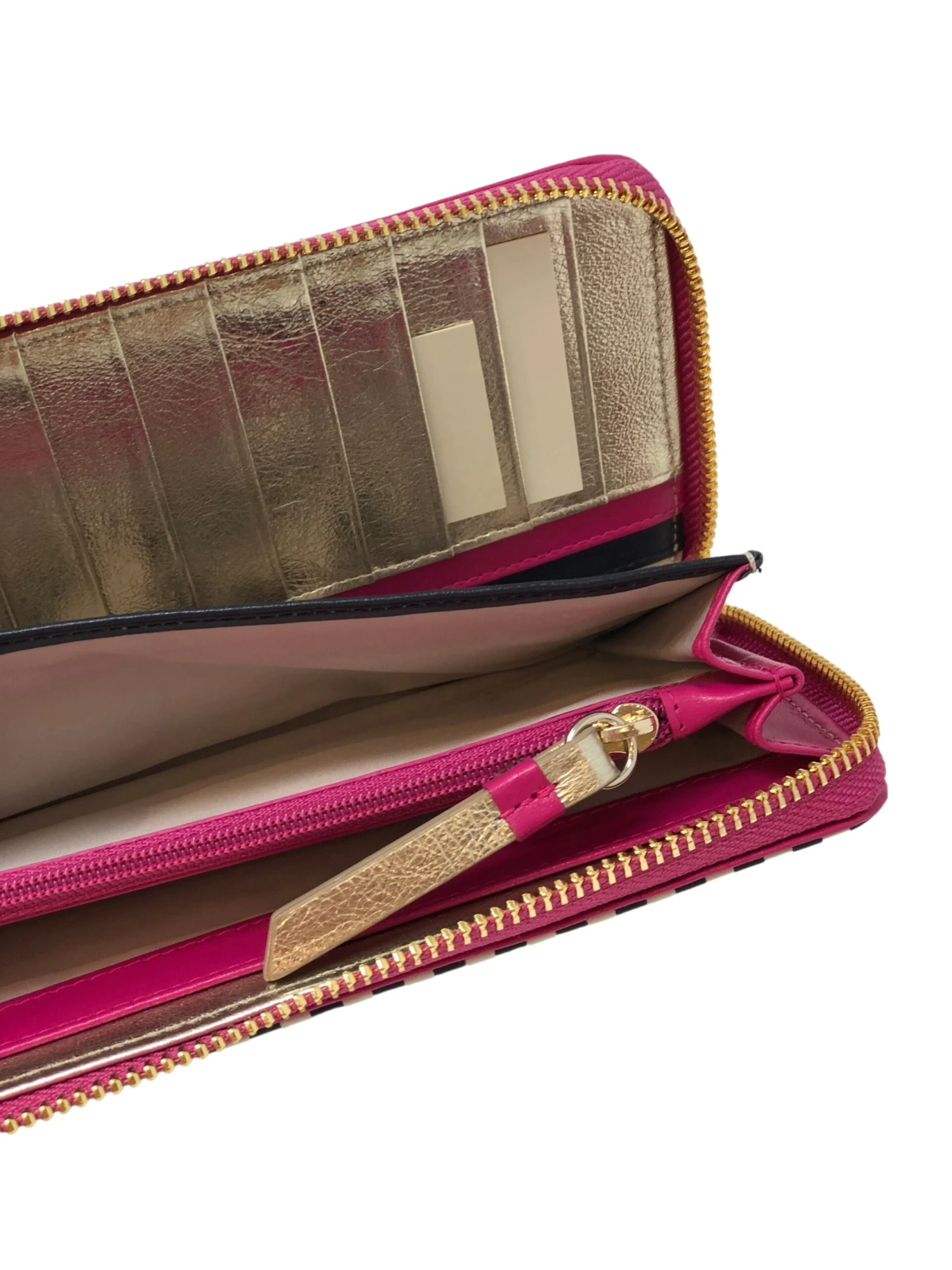 Raikas ja persoonallinen Radleyn lompakko pitää sisällään 14 korttipaikkaa, vetoketjullisen taskun kolikoille ja tilaa seteleille ja kuiteille. Lompakko sulkeutuu yhdellä vetoketjulla. Upeat kullanväriset yksityiskohdat!