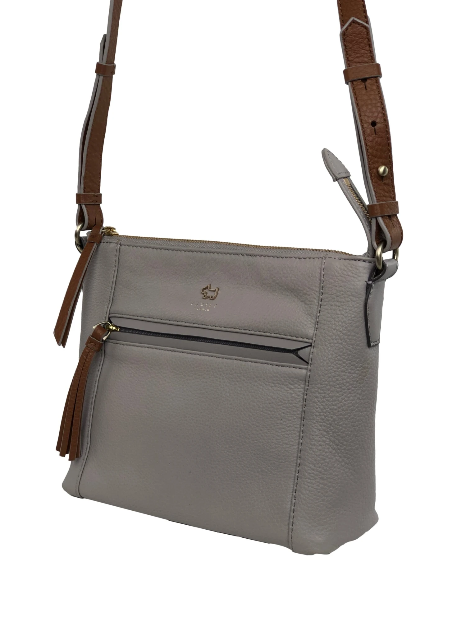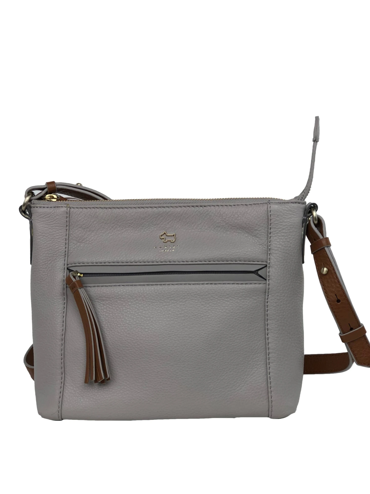 Radleyn selkeälinjainen olkalaukku toimii hyvin jokapäiväisessä käytössä. Vetoketjulla suljettavassa laukussa on mukavasti tilaa tärkeille tavaroille. Laukun sisäpuolella on vetoketjutasku ja kaksi avotaskua. Laukun edessä on vetoketjutasku ja takana nepparilla suljettava tasku. Laukussa on ruskea hihna jossa on harmaat kanttaukset. Hihnan pituutta voi vähän säätää.