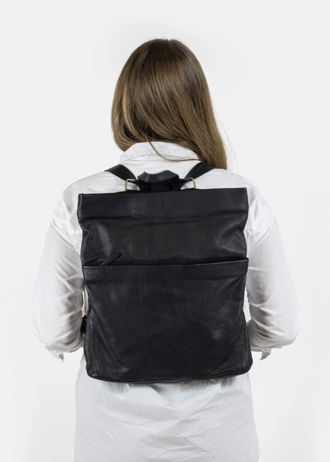 Re:Designed Begndal on hyvän kokoinen pehmeä nahkareppu, jonka saa halutessaan myös olkalaukuksi. Repun sisällä on pari avotaskua ja pieni vetoketjutasku. Repun ulkopuolella molemmin puolin on vetoketjutaskut.