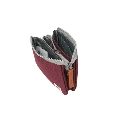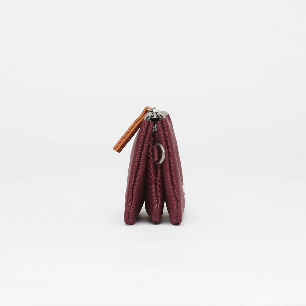 Roka London Carnaby on kierrätysmateriaalista valmistettu lompakko. Pienessä kevyessä kukkarossa on vetoketju ja se on jaettu kolmeen erilliseen osioon. Keskimmäisessä osiossa on vielä oma vetoketjunsa. Lompakossa on pieni rengas josta sen saa myös avaimiin roikkumaan.