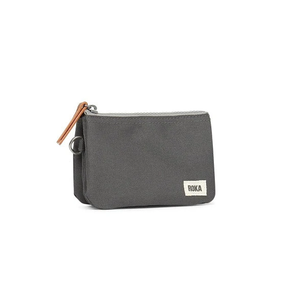 Roka London Carnaby on lompakko, joka on valmistettu kierrätysmateriaalista. Pienessä kevyessä kukkarossa on vetoketju ja se on jaettu kolmeen osaan. Keskimmäisessä osiossa on oma vetoketjunsa. Lompakossa on pieni rengas josta sen saa myös avaimiin roikkumaan.