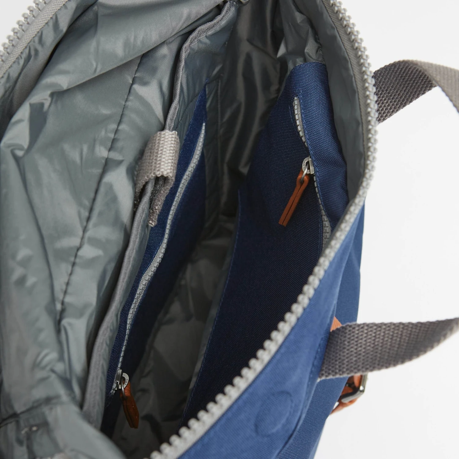 Uusi ja erilainen Roka Sustainable! Repussa on vedenpitävä ja kestävä kangas. Roka repun valmistukseen on käytetty tavallista vähemmän energiaa, ja jokainen reppu on valmistettu 12-15 rannalta kerätystä muovipullosta. Reppu on kevyt ja sen puuvillaiset olkaimet pehmenevät käytön myötä. Vetoketju ei ole vesitiivis, mutta se jää yläosan taitteen alle piiloon, eikä vesi siten pääse repun sisälle. Reppu toimii siis hyvin vesisateessa, mutta varsinaista upotusta veteen reppu ei kestä. Repun sisällä on tietokonetasku, jonne mahtuu max 17″ tietokone. Lisäksi repun sisällä on vetoketjutasku ja pieniä taskuja, joihin saa pikkutavarat talteen. Repun edessä on tasku, jossa on solkikiinnitys. Toisella laidalla selän puolella on pieni vetoketjutasku, ja lisäksi molemmilla sivuilla on taskut esimerkiksi juomapullolle