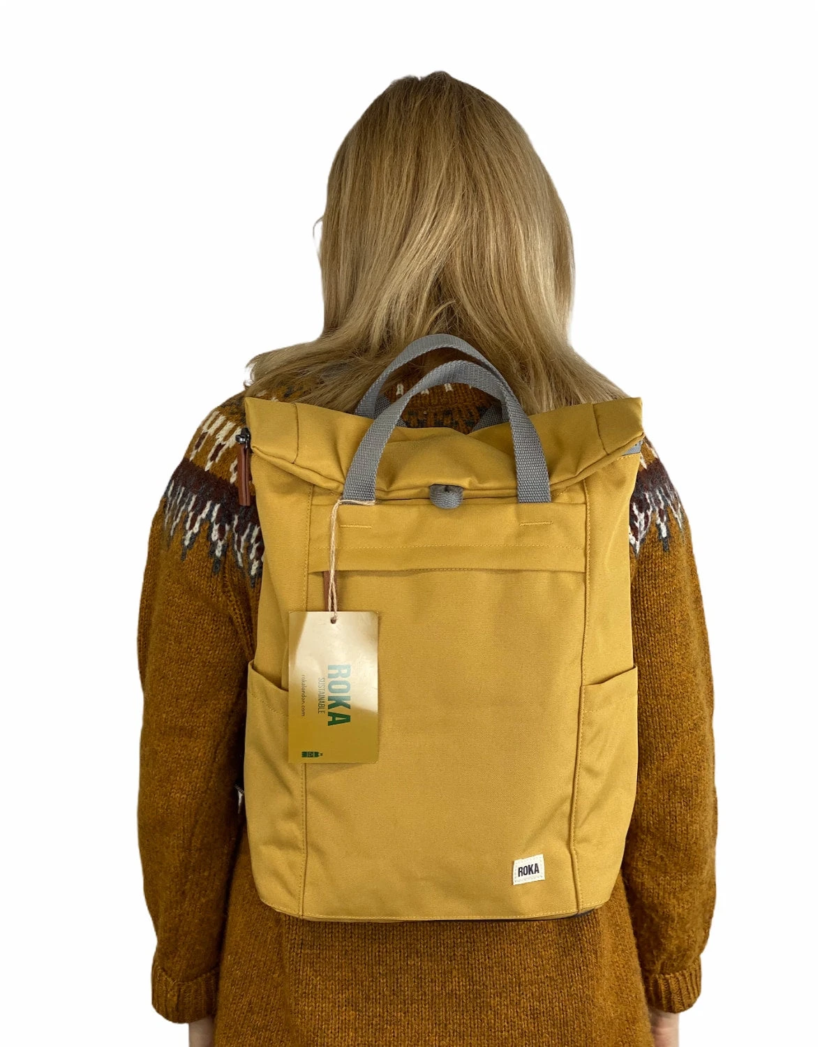 Ympäristöystävällinen reppu on vedenpitävää kangasta. Kangas on valmistettu 12-15 rannalta kerätystä muovipullosta. Kierrätysmateriaalin lisäksi itse tuotteen valmistukseen käytetään tuotannonossa tavallista vähemmän energiaa. Roka reppu on kestävää kangasta ja ihanan kevyt käyttää. Olkaimet ovat puuvillaa ja pehmenevät käytössä vielä miellyttävämäksi. Repun vetoketju ei ole täysin vedenpitävä, mutta se jää taitteen alle. Reppu toimii siis hyvin vesisateessa, mutta veteen upotessa reppu ei pidemmän päälle pidä sisustaa täysin kuivana. Repun sisällä on tietokonetasku, vetoketjutasku sekä useita pienempiä taskuja kaikelle tarpeelliselle. Repun edessä on vetoketjutasku ja sivuissa avotaskut vaikka juomapullolle.