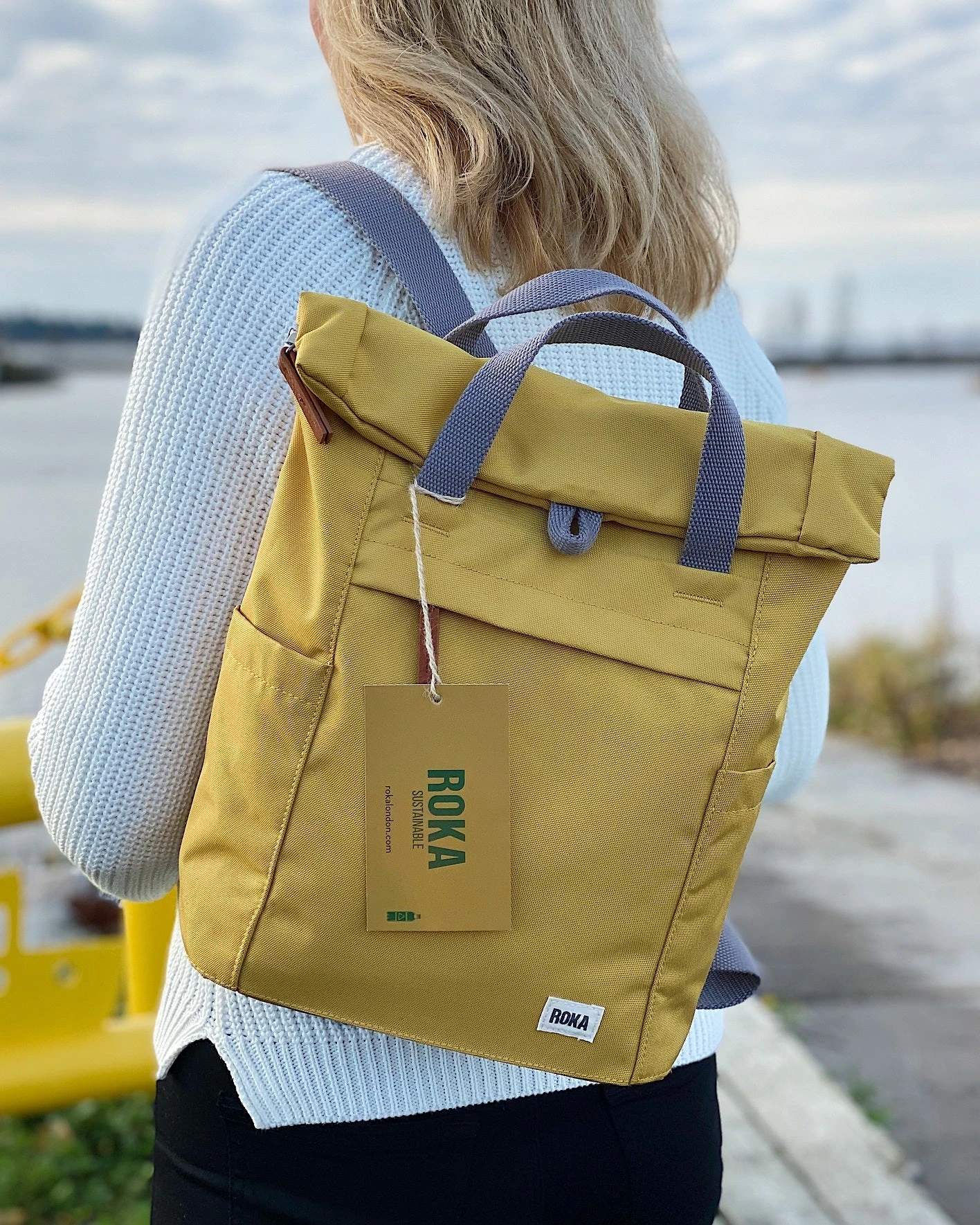 Reppu on ympäristöystävöllinen ja pitää vettä. Se on valmistettu 12-15 rannoilta kerätyistä muovipulloista. Kierrätysmateriaalin lisäksi itse repun valmistuksessa käytetään normaali tuotantoa vähemmän energiaa. Reppu on kestävää kangasta ja ihanan kevyt käyttää. Olkaimet ovat puuvillaa ja pehmenevät käytössä vielä miellyttävämäksi. Vetoketju ei ole täysin vedenpitävä, mutta se jää taitteen alle. Reppu toimii siis hyvin vesisateessa, mutta veteen upotessa reppu ei pidemmän päälle pidä sisustaa täysin kuivana. Repun sisällä on tietokonetasku, vetoketjutasku sekä useita pienempiä taskuja kaikelle tarpeelliselle. Repun edessä on vetoketjutasku ja sivuissa avotaskut vaikka juomapullolle.