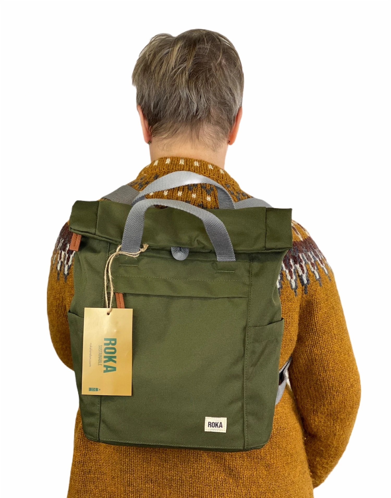 Ympäristöystävällinen reppu on vedenpitävää kangasta. Se on valmistettu 12-15 rannalta kerätystä muovipullosta. Kierrätysmateriaalin lisäksi itse tuotteen valmistukseen käytetään tavallista vähemmän energiaa. Reppu on kestävää kangasta ja ihanan kevyt käyttää. Olkaimet ovat puuvillaa ja pehmenevät käytössä vielä miellyttävämäksi. Vetoketju ei ole täysin vedenpitävä, mutta se jää taitteen alle. Reppu toimii siis hyvin vesisateessa, mutta veteen upotessa reppu ei pidemmän päälle pidä sisustaa täysin kuivana. Repun sisällä on tietokonetasku, vetoketjutasku sekä useita pienempiä taskuja kaikelle tarpeelliselle. Repun edessä on vetoketjutasku ja sivuissa avotaskut vaikka juomapullolle.