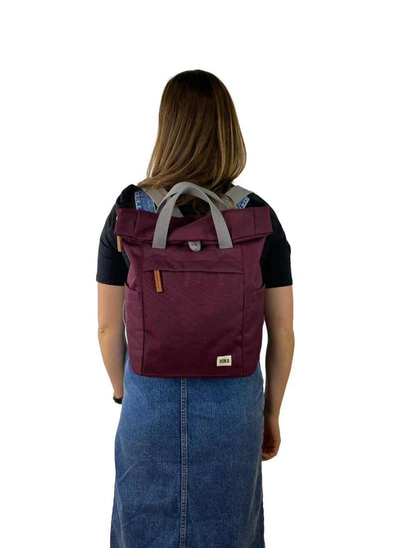 Ympäristöystävällinen reppu on vedenpitävää kangasta. Se on valmistettu 12-15 rannalta kerätystä muovipullosta. Kierrätysmateriaalin lisäksi itse tuotteen valmistukseen käytetään tavallista vähemmän energiaa. Reppu on kestävää kangasta ja ihanan kevyt käyttää. Olkaimet ovat puuvillaa ja pehmenevät käytössä vielä miellyttävämäksi. Vetoketju ei ole täysin vedenpitävä, mutta se jää taitteen alle. Reppu toimii siis hyvin vesisateessa, mutta veteen upotessa reppu ei pidemmän päälle pidä sisustaa täysin kuivana. Repun sisällä on tietokonetasku, vetoketjutasku sekä useita pienempiä taskuja kaikelle tarpeelliselle. Repun edessä on vetoketjutasku ja sivuissa avotaskut vaikka juomapullolle.