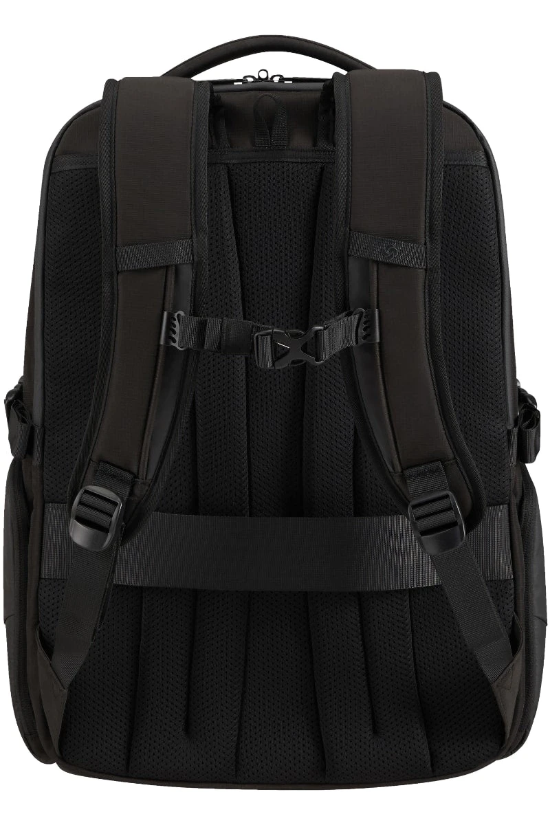 Samsoniten repussa saat järkevän jaon kannettavalle, työpapereille ja vaihtovaatteille. Reppu jakautuu tavallaan kolmeen osioon: Repun edessä on oma tilava tasku esimerkiksi papereille.