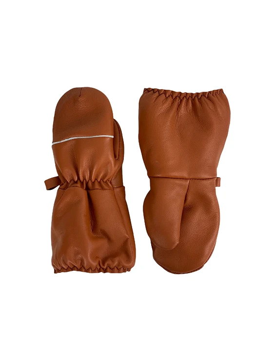 Lasten kotimaiset lämpimät nahkakintaat ruskeat