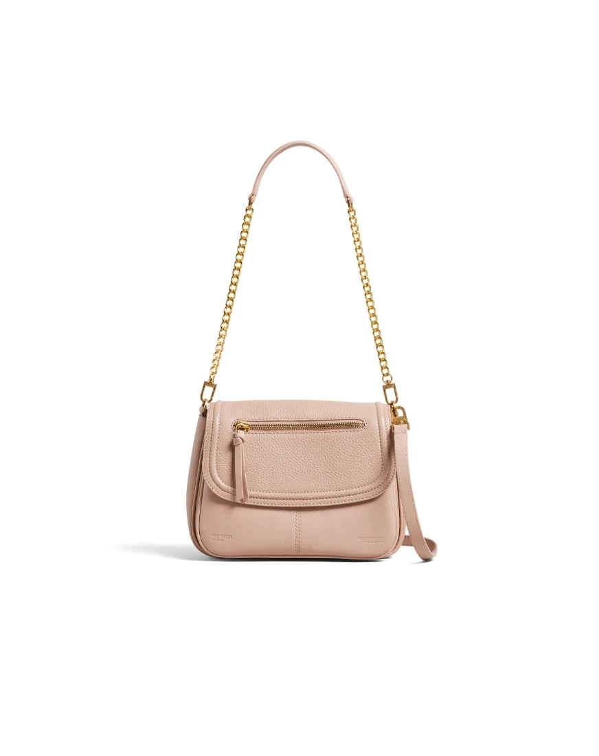 Perinteinen olkalaukku päivitettynä nykyaikaan! Nishat nahkalaukussa on läpän alla kolme osiota, joista keskimmäinen on tilavin. Laukun sisällä on lisäksi yksi avotasku ja yksi vetoketjutasku. Laukun edessä oleva vetoketjutasku on koriste. Laukussa on kaksi irroitettavaa hihnaa: lyhyempi metallikoristeella ja pitkä nahkainen säädettävä.