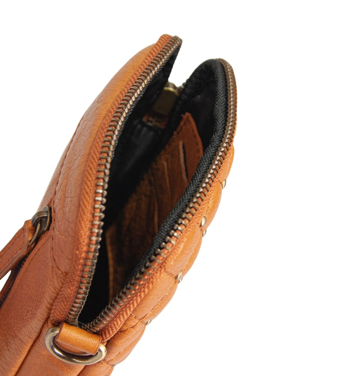 Laukun sisällä on kolme korttipaikkaa ja pieni avotasku. Sisään mahtuu sopivasti juuri puhelin ja avaimet. Laukun takaa löytyy pieni vetoketjutasku. Olkahihna on irroitettava ja säädettävä