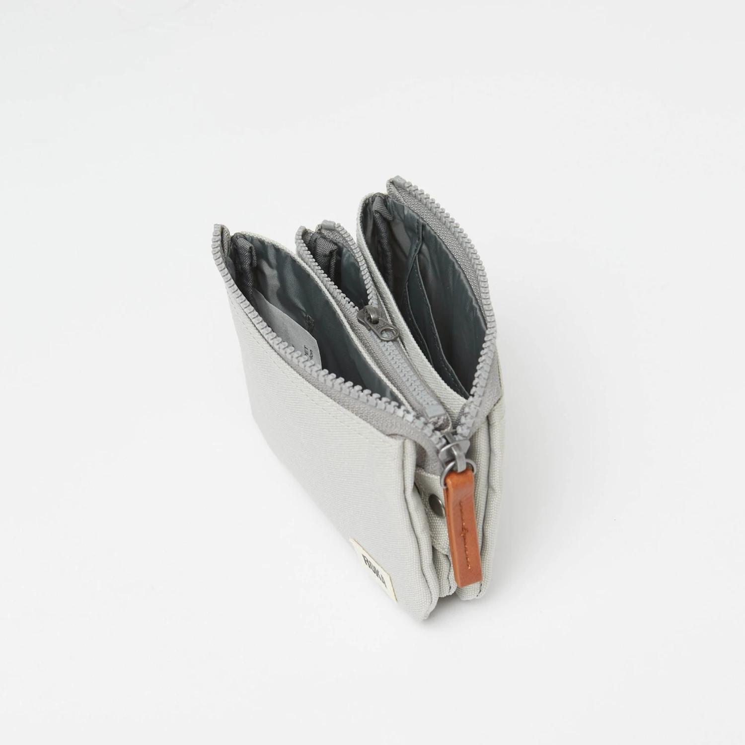 Roka London Carnaby on kierrätysmateriaalista valmistettu lompakko. Kukkarossa on vetoketju ja se jaettu kolmeen osaan. Keskimmäisessä osiossa on oma vetoketjunsa.
