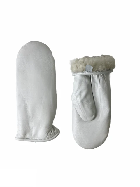 Kauniit valkoiset naisten nahkakintaat. Kintaissa on paksu valkoinen teddyvuori ja ne ovat tosi lämpimät.